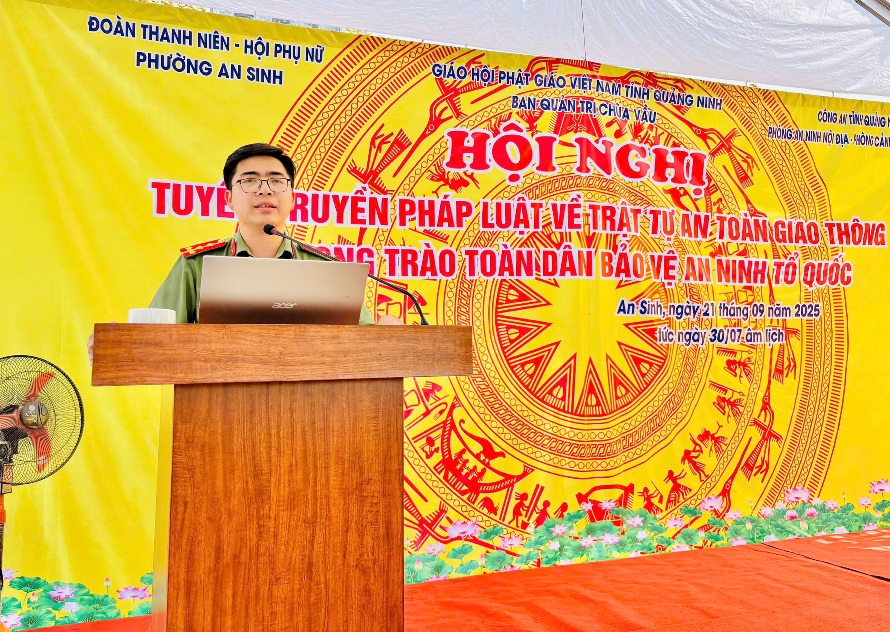 Tại hội nghị, các báo cáo viên đã phổ biến những nội dung quan trọng về pháp luật trật tự an toàn giao thông, ý thức chấp hành luật giao thông trong cộng đồng Phật tử; đồng thời tuyên truyền, vận động Tăng Ni, Phật tử và nhân dân tham gia phong trào toàn dân bảo vệ an ninh Tổ quốc, xây dựng môi trường tu học, sinh hoạt tín ngưỡng an toàn, văn minh.