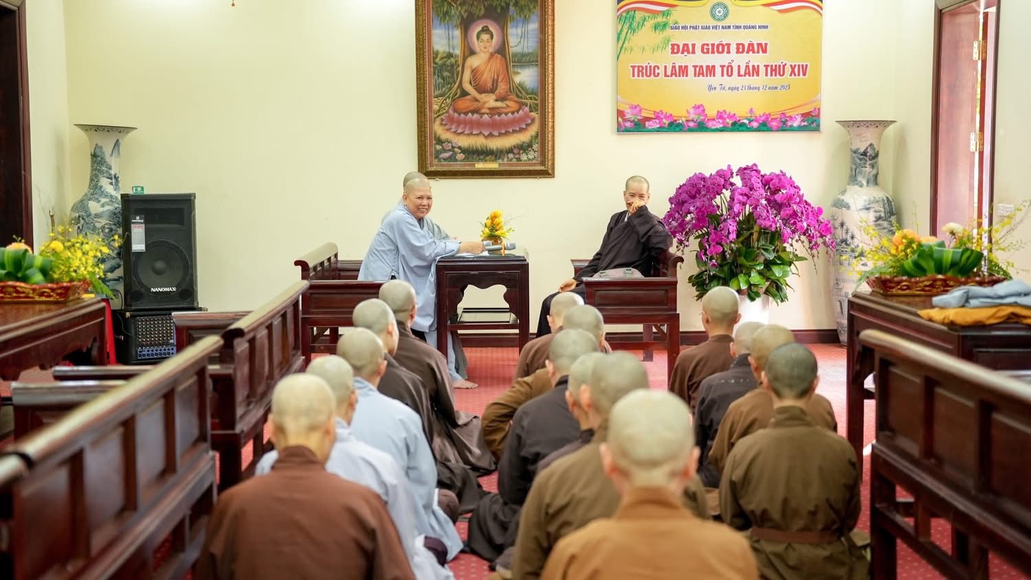 Sau phần khảo hạch, Hòa thượng Thích Đạo Quang - Ủy viên Hội đồng Trị sự, Phó trưởng ban thường trực Ban Trị sự GHPGVN tỉnh Quảng Ninh thay mặt Chư tôn đức khai đạo cho các giới tử.