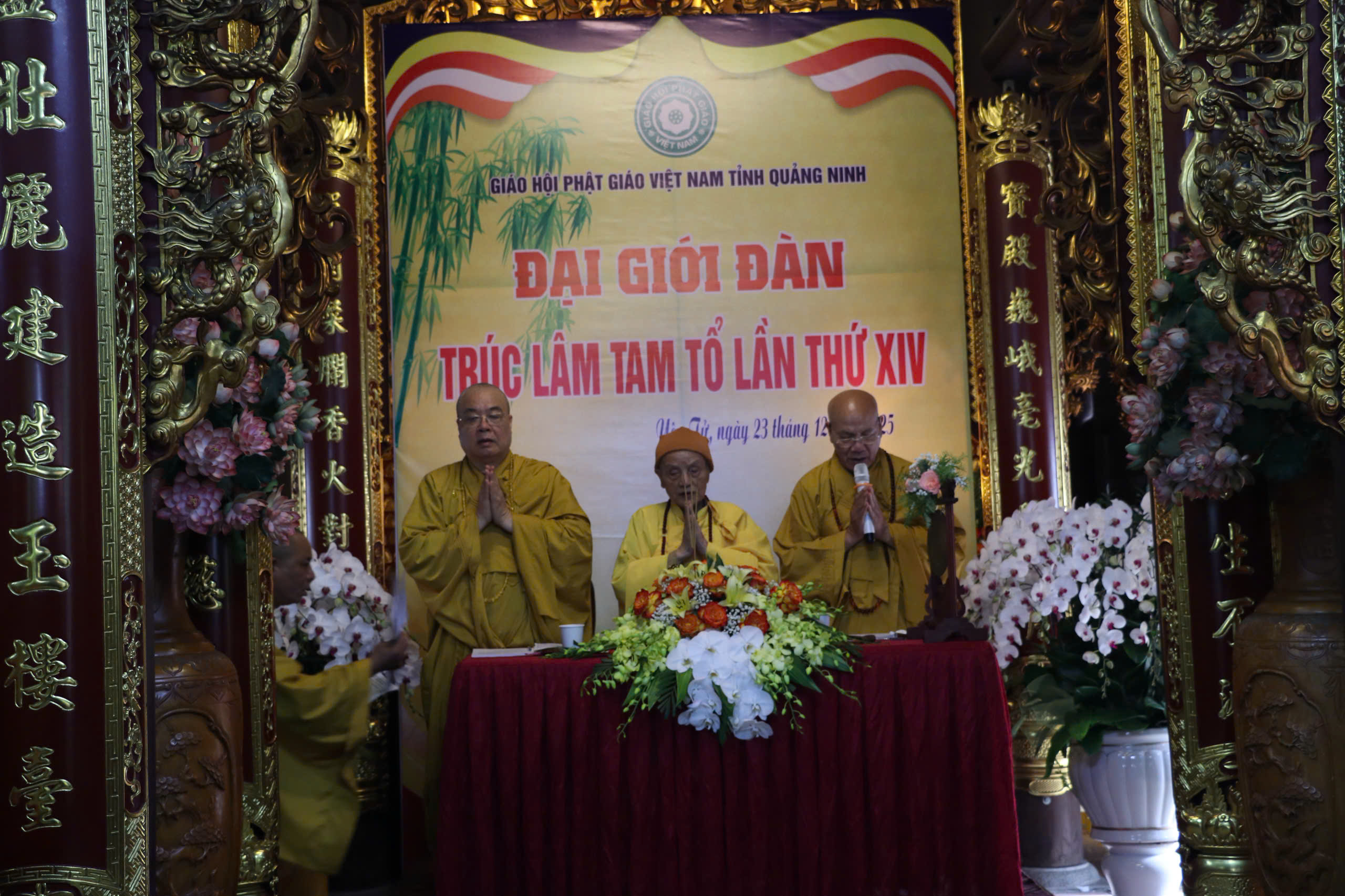 Tại buổi khai mạc, Thượng tọa Thích Đạo Hiển – Ủy viên HĐTS, Phó trưởng ban, Chánh Thư kí Ban Trị sự GHPGVN tỉnh Quảng Ninh đã thay mặt Ban tổ chức trình bày báo cáo công tác tổ chức Đại giới đàn Trúc Lâm Tam Tổ lần thứ XIV.