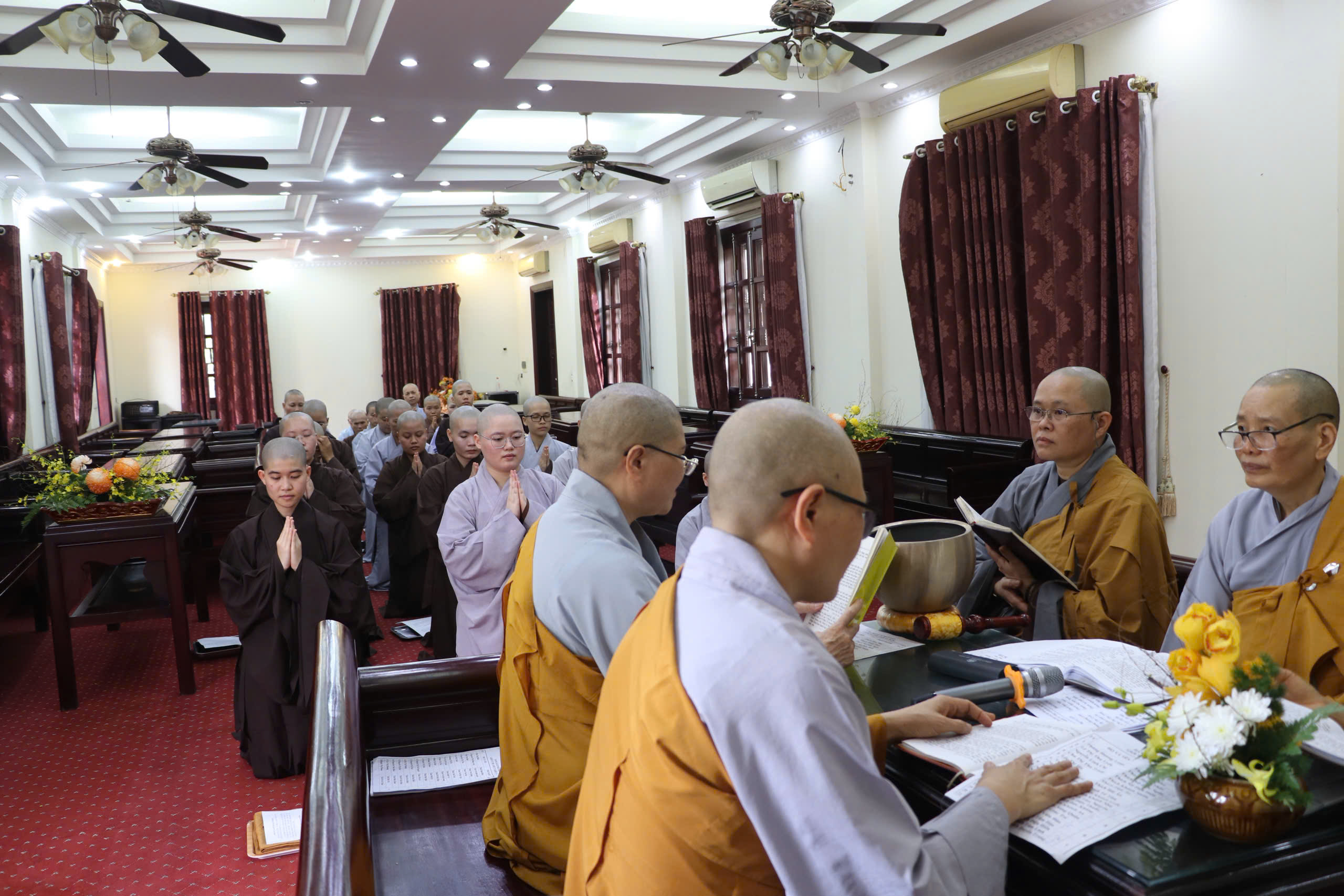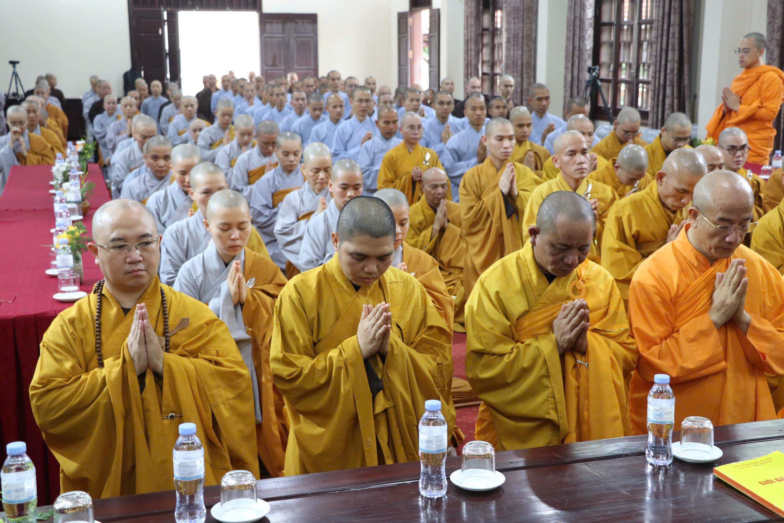 Thượng tọa Thích Đạo hiển báo cáo công tác tổ chức Đại giới đàn Trúc Lâm Tam Tổ lần thứ XIV