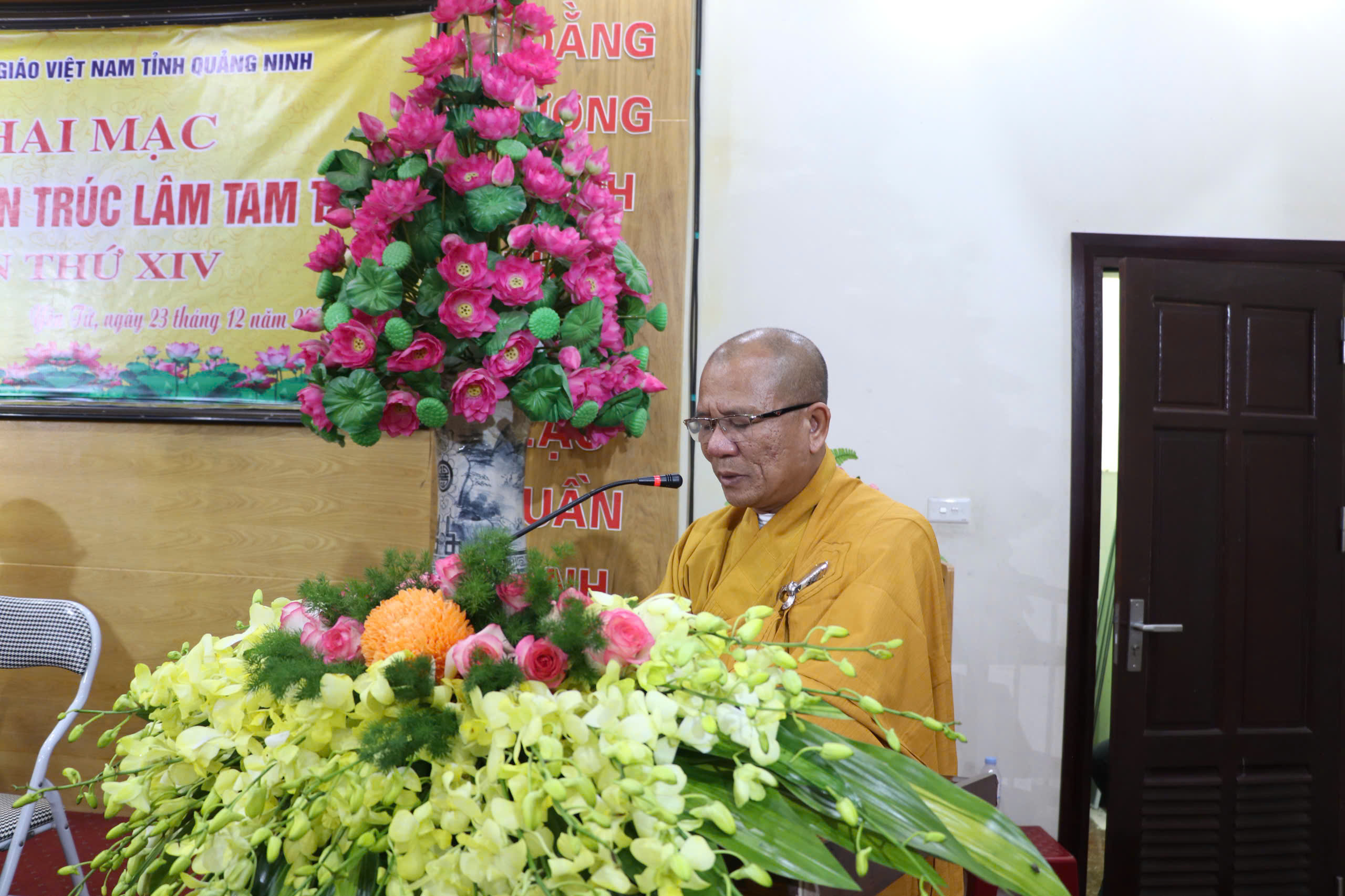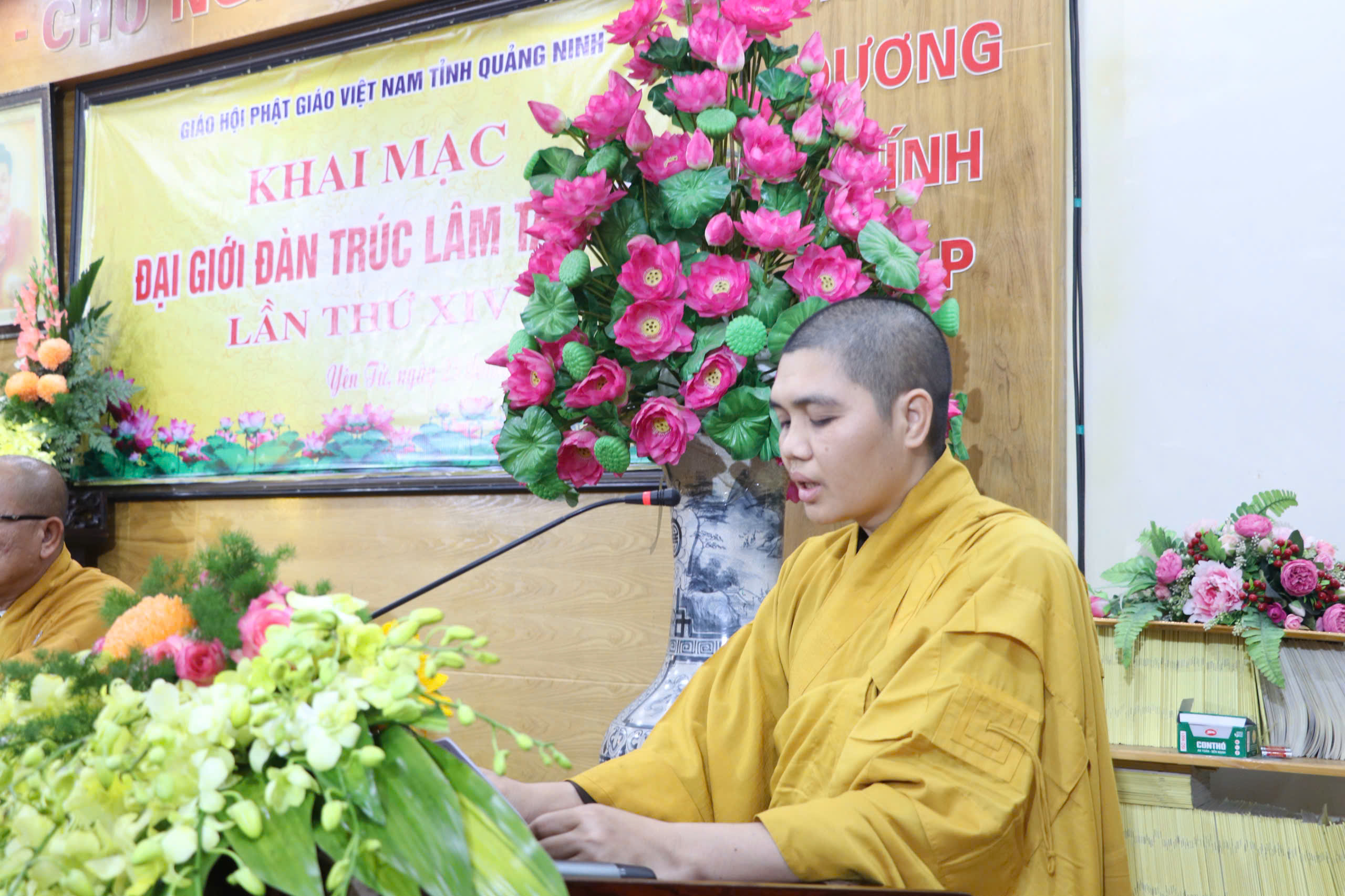 Tại buổi khai mạc, Thượng tọa Thích Đạo Hiển – Ủy viên HĐTS, Phó trưởng ban, Chánh Thư kí Ban Trị sự GHPGVN tỉnh Quảng Ninh đã thay mặt Ban tổ chức trình bày báo cáo công tác tổ chức Đại giới đàn Trúc Lâm Tam Tổ lần thứ XIV.