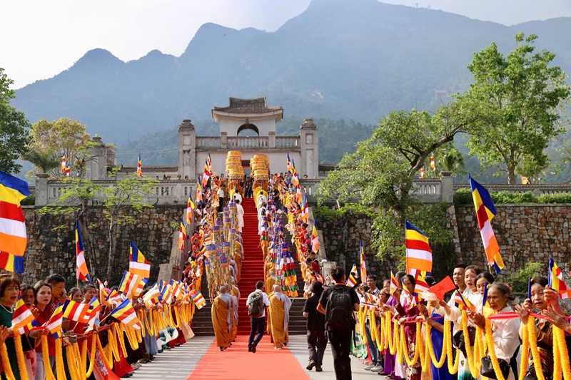 Trưa ngày 25/5, xá lợi của Đức Phật bắt đầu được cung rước từ chùa Phúc Sơn (huyện Tân Yên, Giang) về Yên Tử. Đoàn xe cung rước của Phật giáo tỉnh Quảng Ninh với hàng trăm xe hoa được trang trí hoa tươi, băng rôn, biểu ngữ thể hiện sự tôn kính với xá lợi Đức Phật.